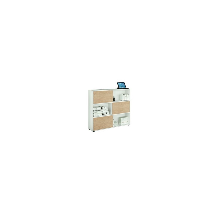 Libreria bassa a 3 ripiani ante scorr. 120X35cm H116cm BIANCO/ROVERE - Tetris 86671 17065/3C