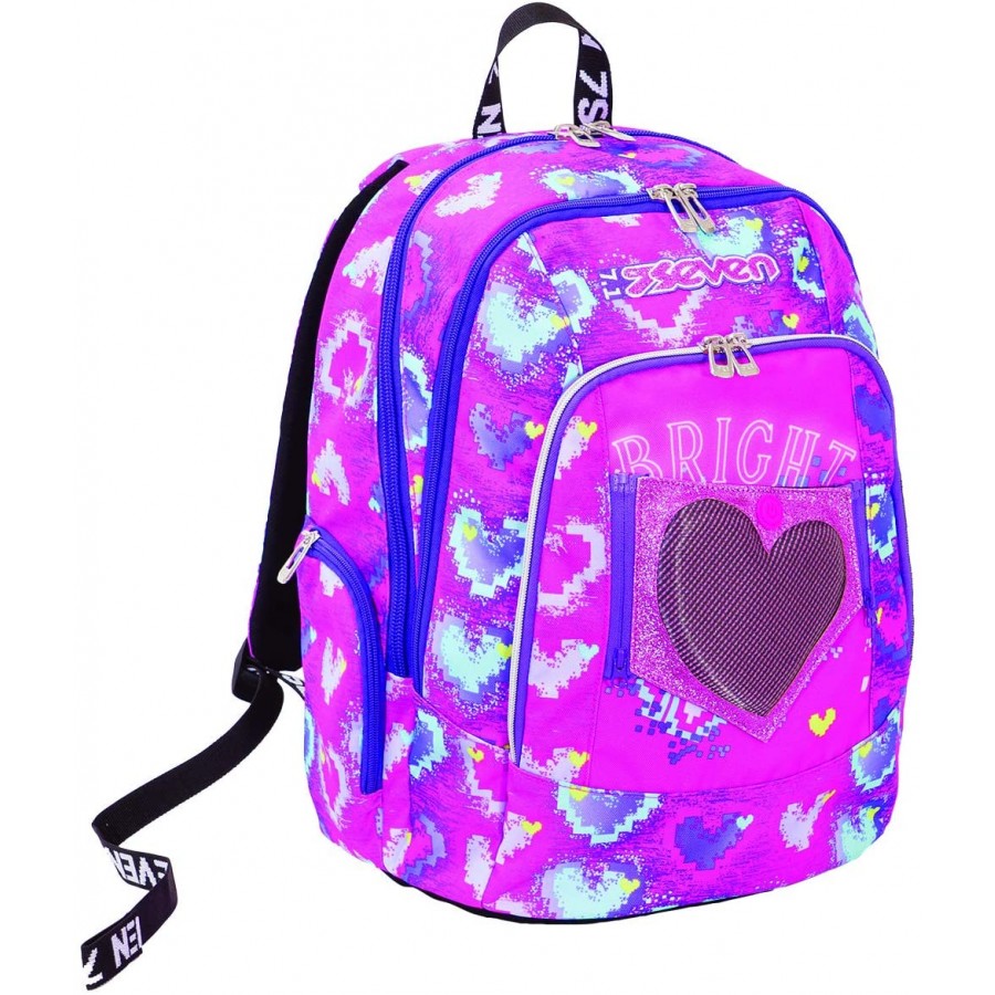 Capacità 30 LT Dimensioni 31 x 43 x 24 cm Funzionali Doppio scomparto. Stampa mylar sfumata e applicazione glitter. Inserti rifrangenti per una protezione a 360°. Tasca porta pc fino a 15″ Garanzia 4 ANNI Schienale Ergosystem preformato con fondo integrato. Spallacci Imbottiti e rivestiti in tessuto e rete traspirante. Tasche Tasca interna porta Laptop/PC fino a 15″. Tasca interna “SECRET POCKET” nello scomparto principale. Tasca frontale con organizer. Taschine laterali. Tessuto Tessuto poliestere