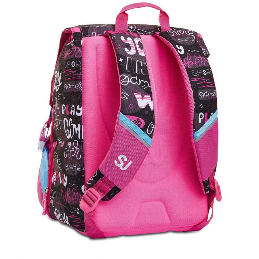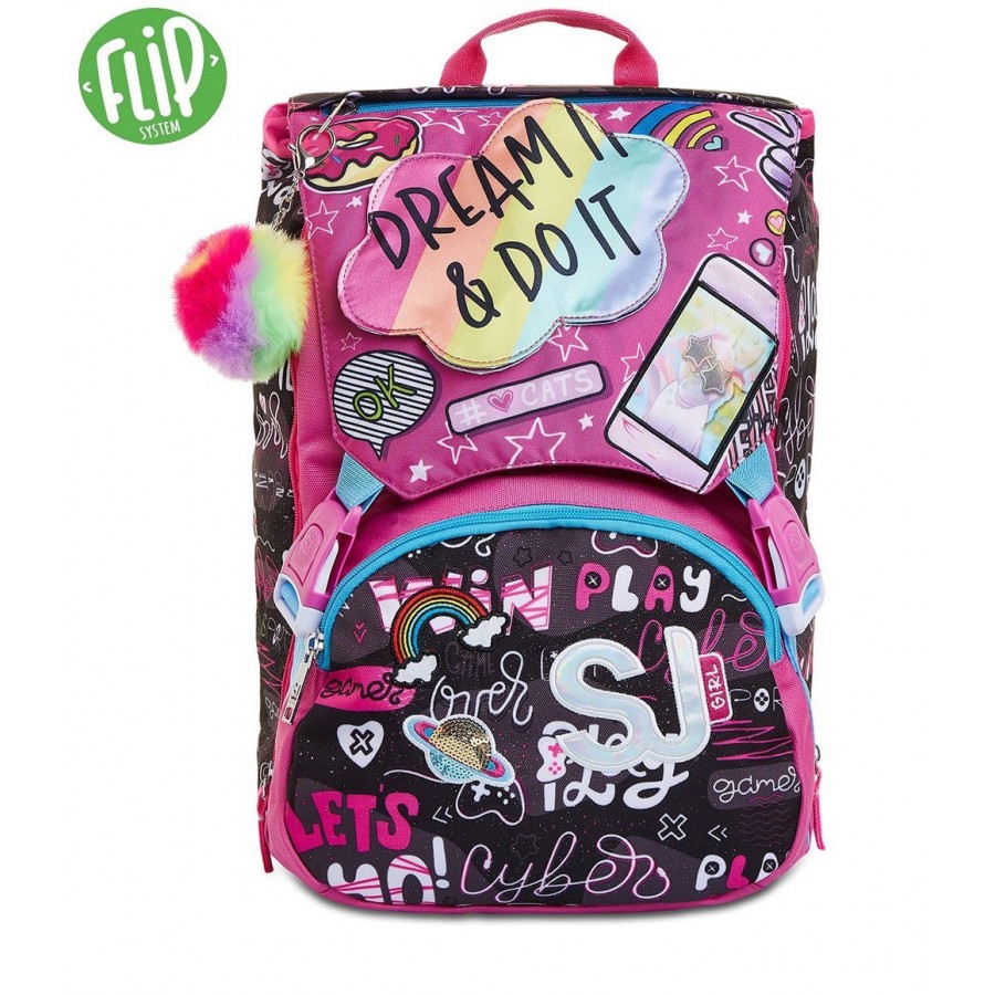 CaratteristicheZaino estensibile con zip laterale. Inserti rifrangenti per protezione a 360°. Sistema "FLIP SYSTEM" con 3 pattine sfogliabili calamitate con diverse fantasie.