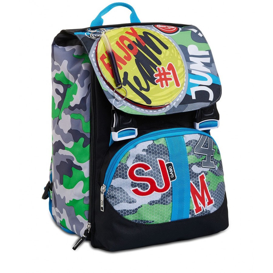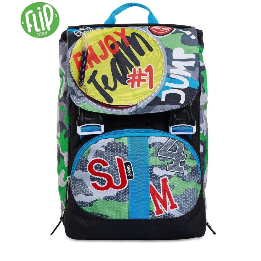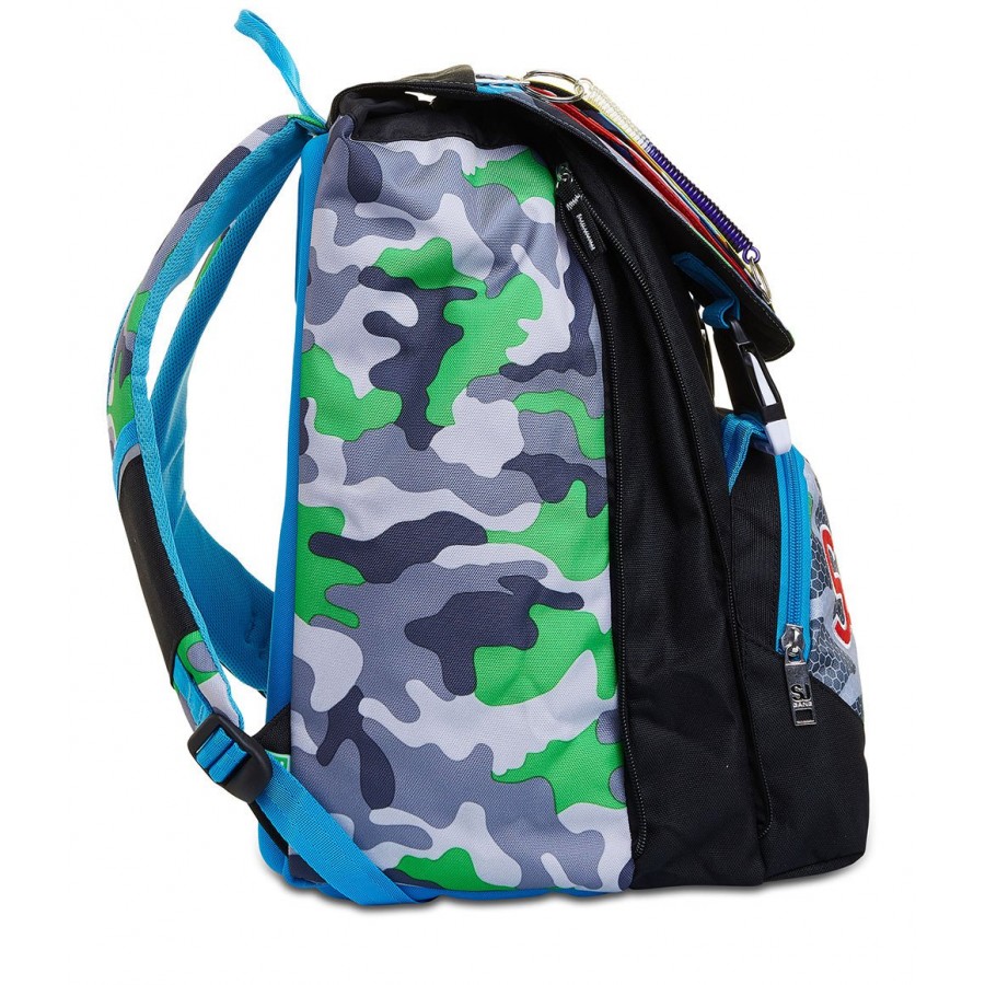 CaratteristicheZaino estensibile con zip laterale. Inserti rifrangenti per protezione a 360°. Sistema "FLIP SYSTEM" con 3 pattine sfogliabili calamitate con diverse fantasie.